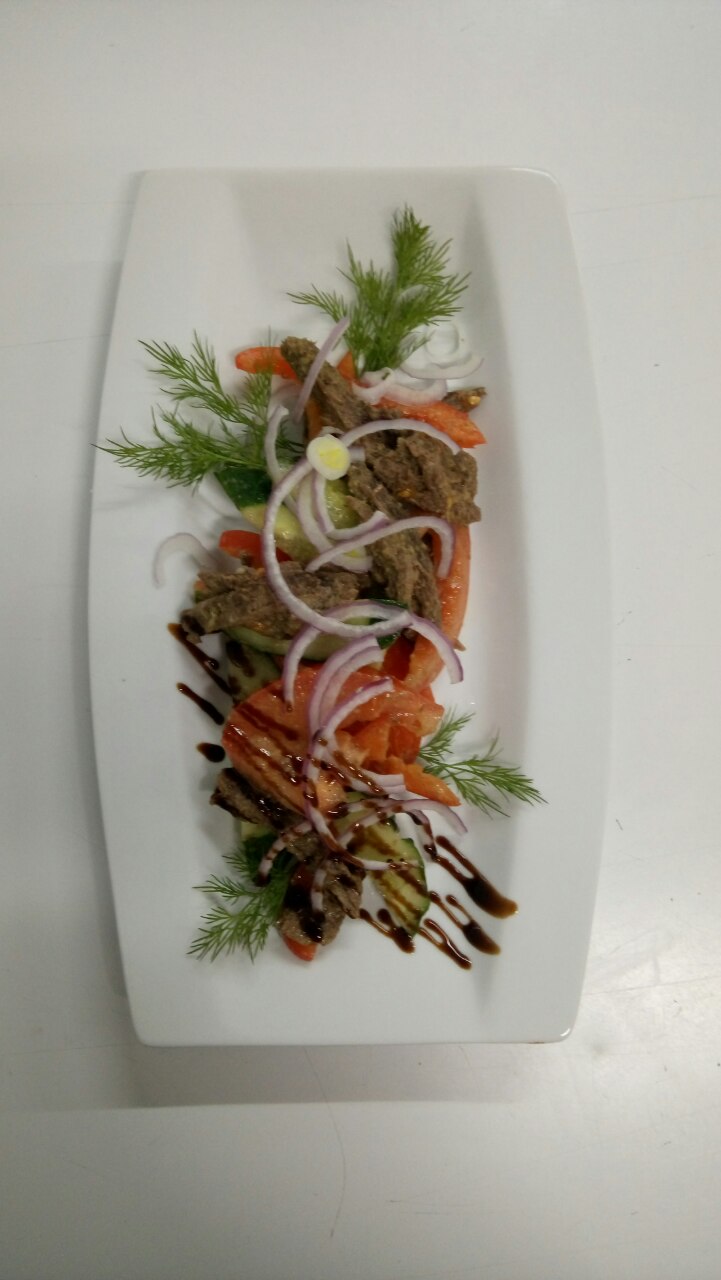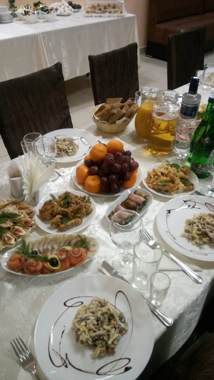 Меню представлено самыми востребованными блюдами европейской и русской кухни и насчитывает более 400 наименований. Основной раздел порадует каждого нашего гостя большим ассортиментом популярных салатов и горячих блюд. Так же у нас Вы можете заказать фруктовые чаши, овощные, сырные и мясные нарезки, холодные и горячие закуски и, конечно же, вкуснейшие десерты. А в дополнение оценить всё разнообразие винной карты. Мы уверены, что сможем приятно удивить даже самых избирательных гостей — в нашем меню есть вегетарианские и постные блюда.